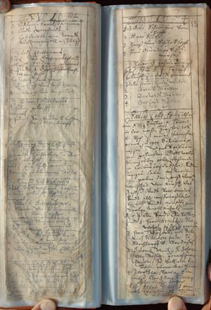 Pages of book are enclosed in protective plastic. For detail of one entry, see following photograph.